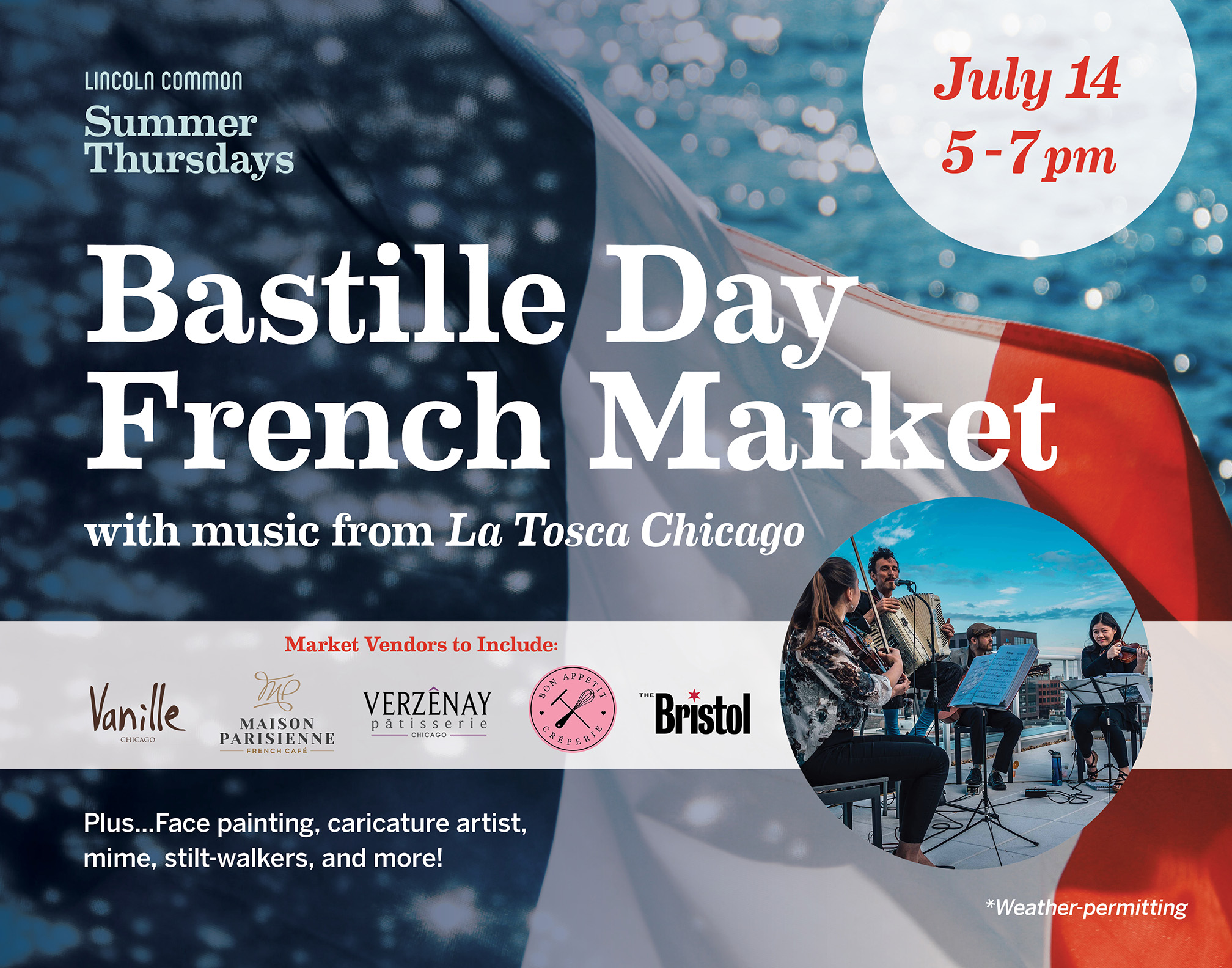Source : www.parisinsidersguide.comSummer Thursdays at Lincoln Common Bastille Day French Night Market!